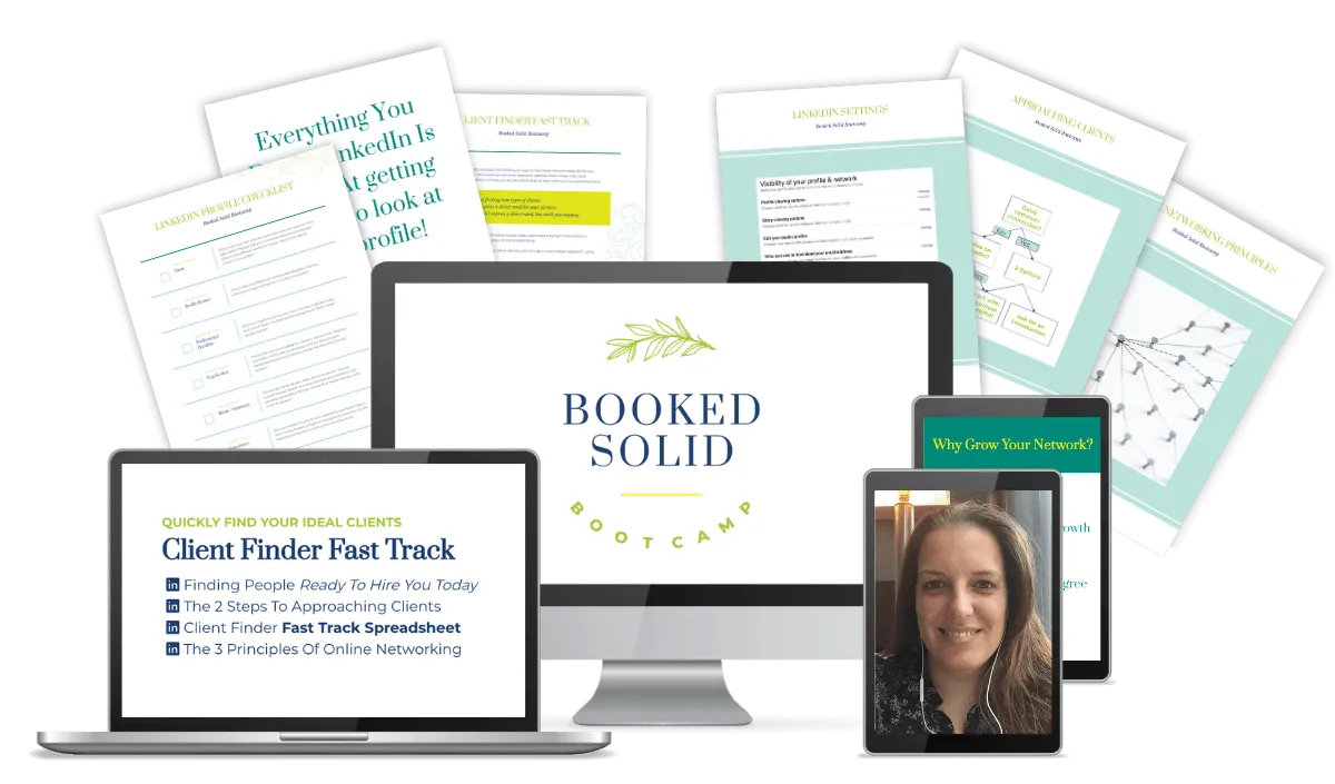 However, if you want to feel good about finding new clients, and want to learn from someone who’s been successfully using LinkedIn for years to find clients herself in a non-sleazy way, then Booked Solid Bootcamp is what you need!